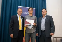El Vicedegà de Relacions Institucionals i Universitats del COETIC (Òscar Planes) i el Vicedegà de Catalunya Nord del COEINF (Àlex Brusi) han fet entrega, fa uns dies, d'un certificat de reconeixement i un petit obsequi al millor titulat del Grau en Enginyeria Informàtica de la promoció 2017-18 de l’Escola Politècnica Superior (EPS) de la Universitat de Girona (UdG), l'estudiant Ramon Viñas, en un acte presidit pel Rector de la UdG (Rector Mgfc. Quim Salvi), la Directora de l’Escola Politècnica Superior (Sra MªÀngels Pèlach), la Presidenta del Consell Social de la UdG (Sra. Rosa Núria) i del Secretari del Patronat de la Politècnica (Sr. Abel Paulet).