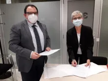 Xavier Bernadí, director general de Dret i d’Entitats Jurídiques del Departament de Justícia de la Generalitat de Catalunya, i Miquel Conesa, degà del Col·legi Oficial d’Enginyeria Tècnica i de Grau en Informàtica de Catalunya (COETIC), han signat un Conveni de Col·laboració en matèria de Mediació.