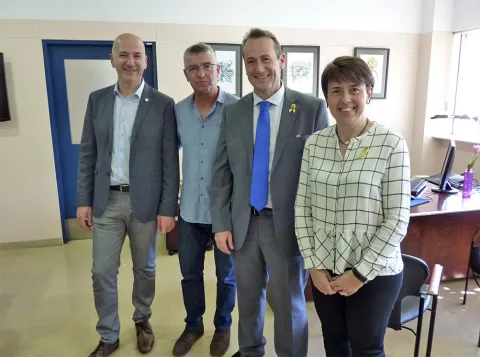 A la fotografia apareixen, d'esquerra a dreta, en Quim Salvi (Rector Magnífic de l'UdG), Xevi Cufi (Sotsdirector Acadèmic de l'EPS), Òscar Planes (Vicedegà de Relacions Institucions del COETIC) i M.Àngels Pèlach (Directora de l'EPS).
