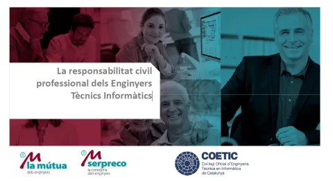 Us informem que el COETIC, juntament amb La Mútua dels Enginyers, organitzarà properament una breu xerrada gratuïta sobre l'assegurança -pòlissa- de Responsabilitat Civil Professional o RCP que tots els col·legiats i col·legiades tenim contractada pel fet de pertànyer al col·legi.