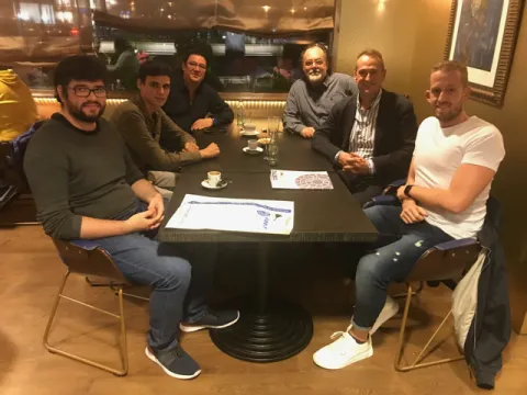Trobada entre Javier Martí i Oscar Planes, representants del COETIC, Àlex Brusi, representant del COEINF i els estudiants de l'EPS de la UdG, David Martínez, millor expedient de Grau en Enginyeria Informàtica 2018-19, Francesc Xavier Bullich, millor expedient de Grau en Enginyeria Informàtica 2019-20 i Òscar Galera, millor expedient de Màster en Enginyeria Informàtica 2018-19.